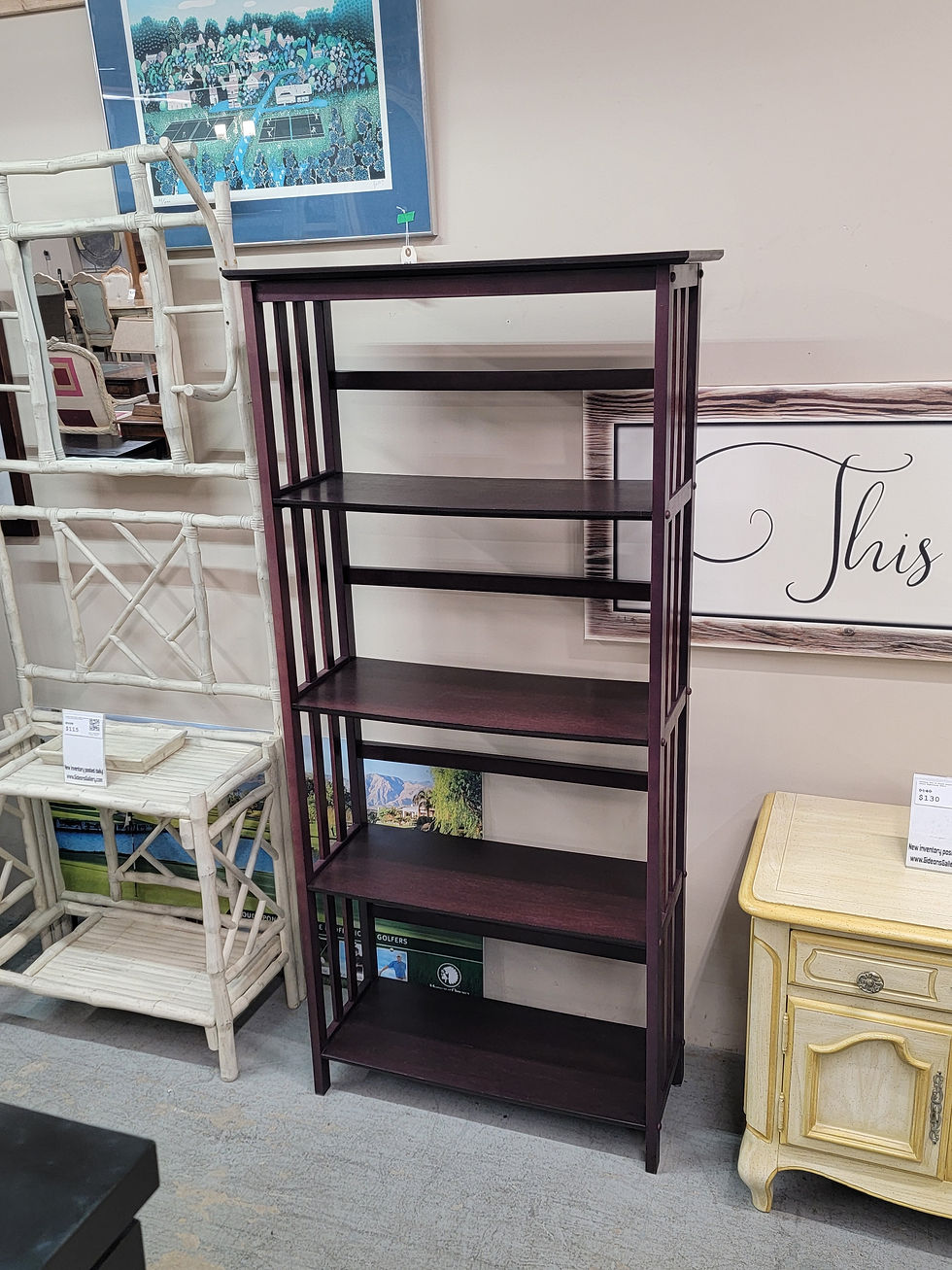 Tall Four Tier Dark Wood Bookshelf Bookcase #487-19